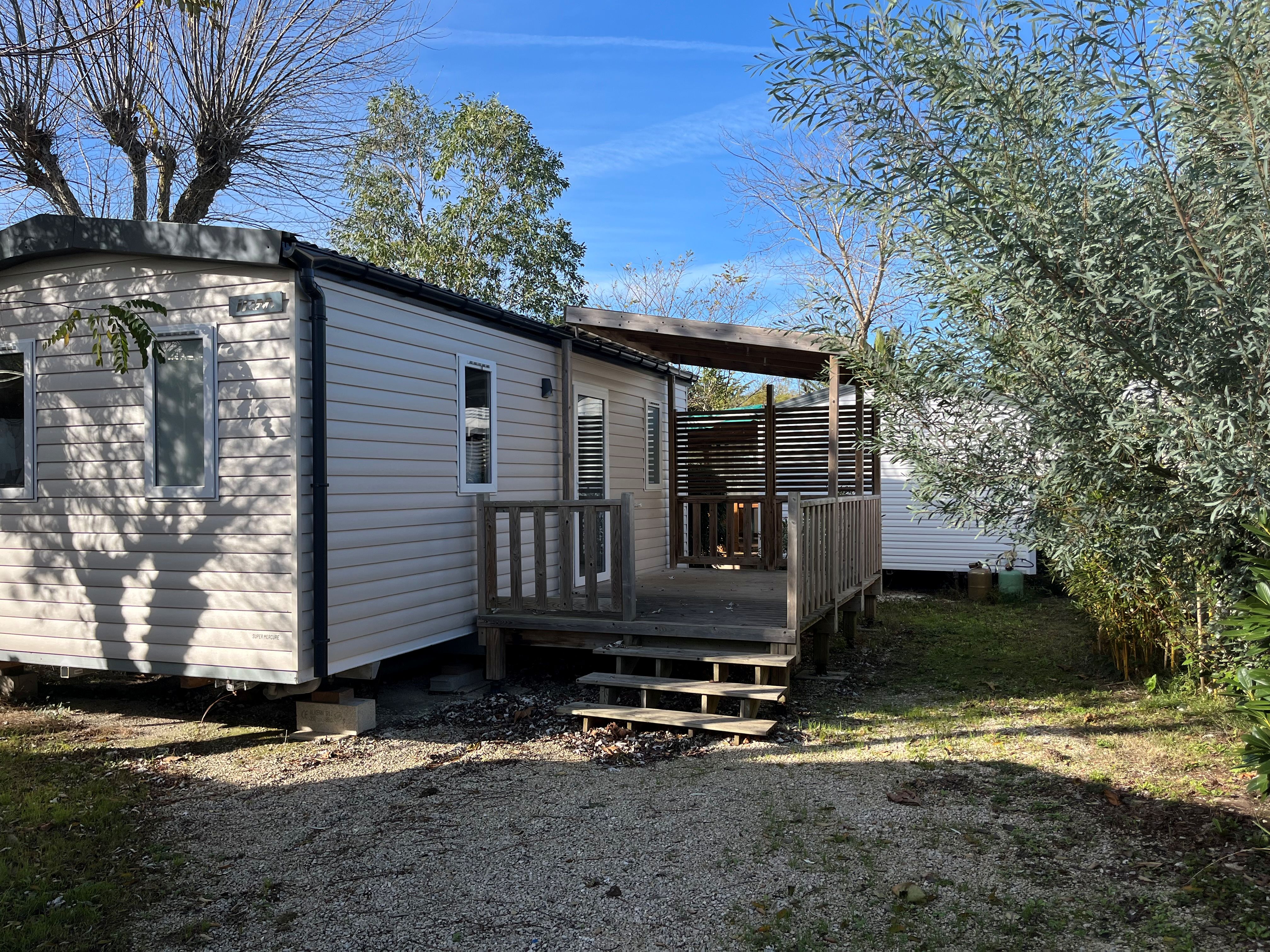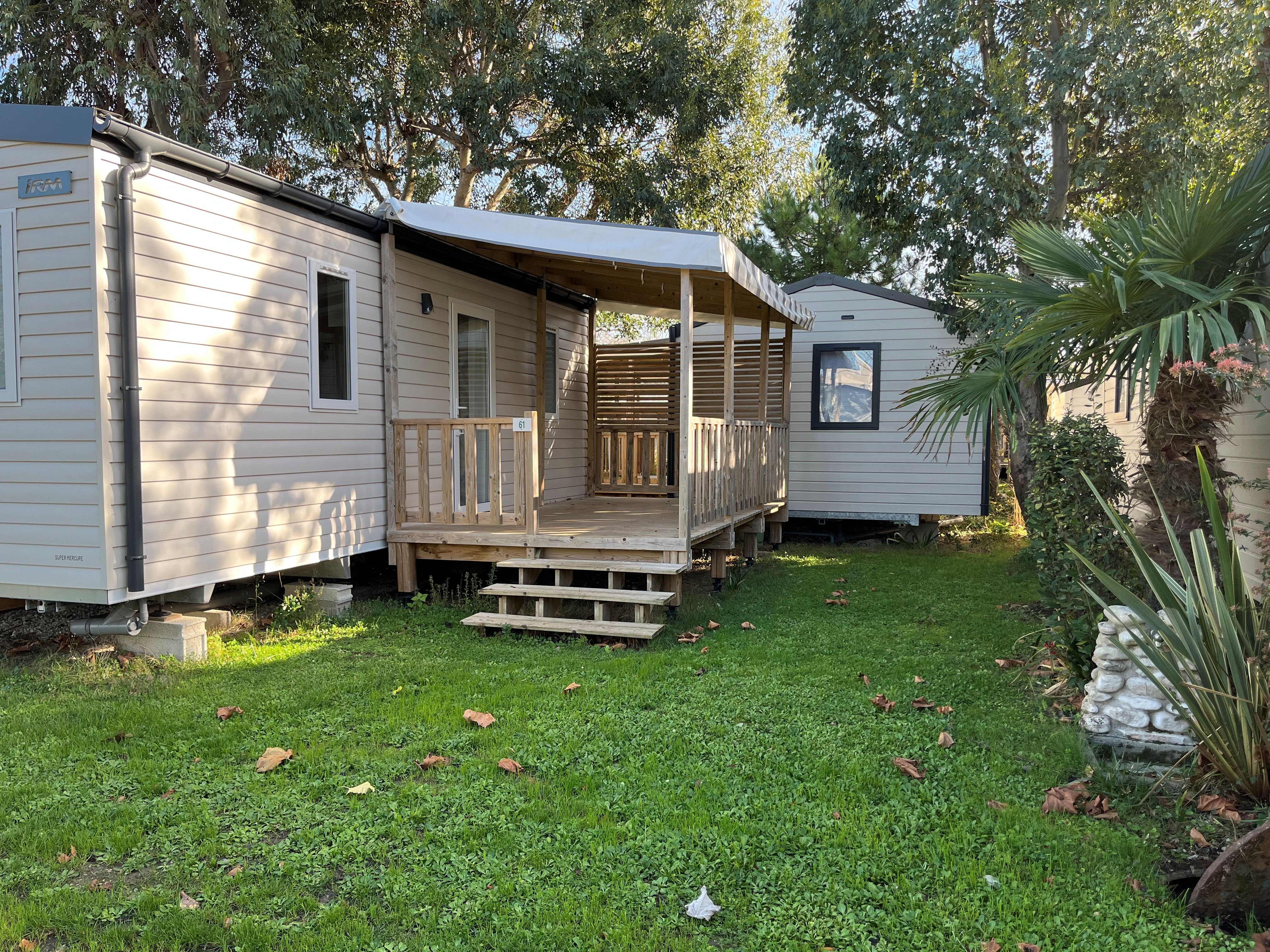Bungalow 27 m2 für 4 Personen, 2 Schlafzimmer (1 Doppelbett, zwei Einzelbetten), Küche, Bad und WC getrennt. Maximales Dienstalter : 2016